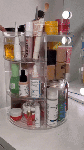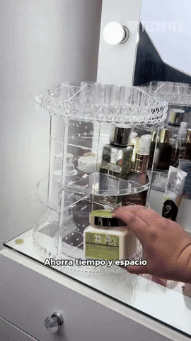 Con nuestro Organizador de Maquillaje Giratorio 360°. Mantén tus cosméticos en un solo lugar, eliminando el desorden y las búsquedas desesperadas. Libera espacio valioso y transforma tu rutina diaria.