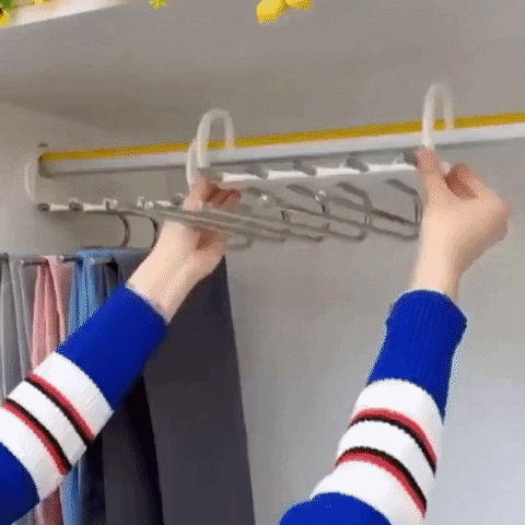 Este innovador perchero presenta un diseño que ahorra espacio, con un estante de almacenamiento ajustable que puede sostener hasta 5 pares de pantalones a la vez. Su tapa antideslizante evita que los pantalones se deslicen, y la varilla ajustable hace que cambiar tus pantalones sea más cómodo que nunca.