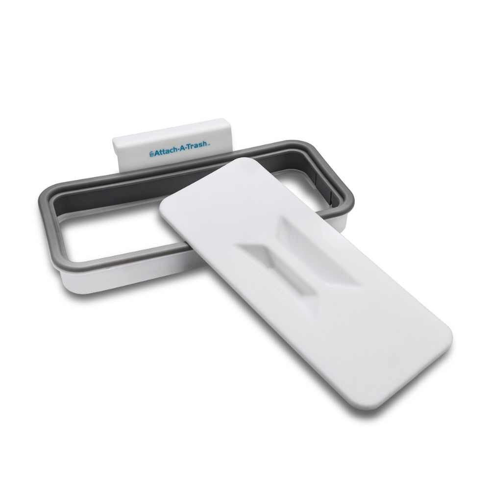 Este porta bolsas se engancha fácilmente a puertas, gabinetes y cajones, manteniendo la bolsa fija y tapada para evitar olores desagradables. Su resistente construcción en plástico ABS asegura durabilidad y capacidad para soportar hasta 10 libras de peso, garantizando un almacenamiento seguro de tus desechos.