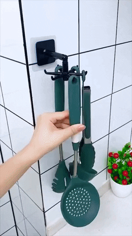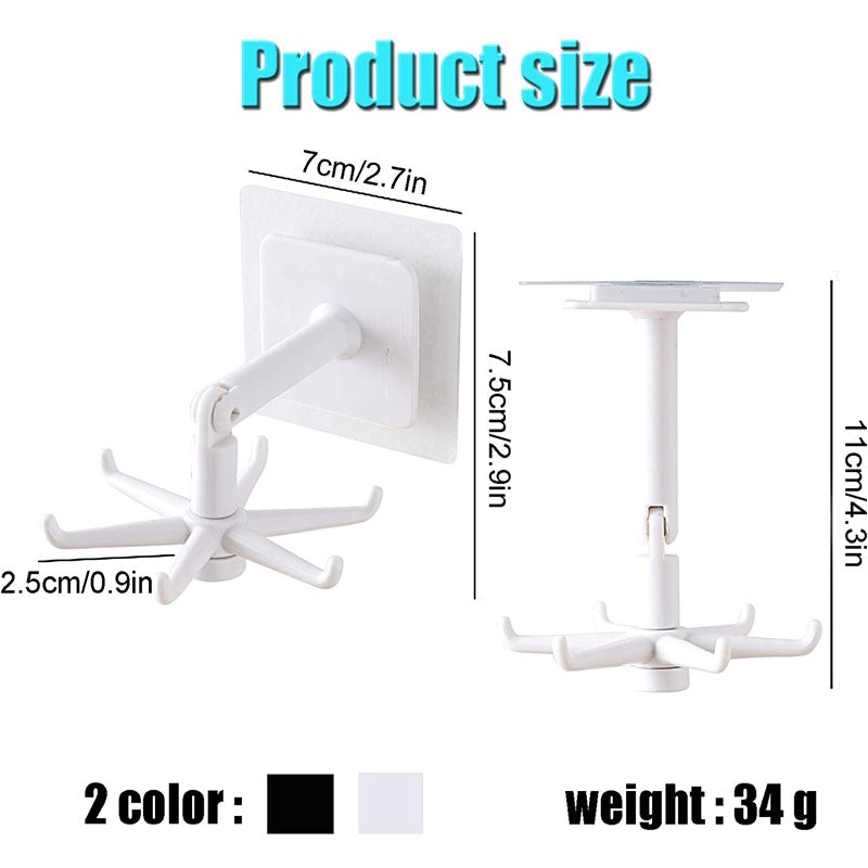 Nuestro set de ganchos giratorios de 360 grados no solo es estéticamente agradable, sino también versátil. Con la capacidad de soportar hasta 10 kg, ofrece una solución práctica para mantener tu cocina organizada. Su instalación sin perforar es fácil y amigable con la pared, mientras que el material ABS a prueba de humedad garantiza durabilidad en cualquier entorno.